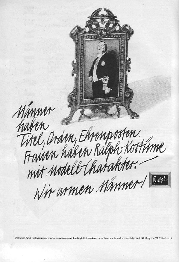 Anzeige 1967: Ralph Modellkleidung – Wir armen Männer