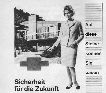 Ein absoluter Klassiker: Auf diese Steine können Sie bauen. Der Copytext im Erzählstil scheint gewirkt zu haben, auch wenn der Abschluß „Schwäbisch hall verdient Ihr Vertrauen. Sprechen auch Sie einmal mit Schwäbisch Hall dann doch etwas holprig wirkt.